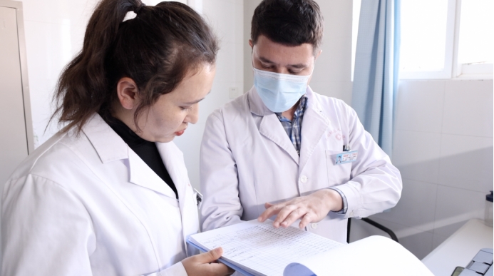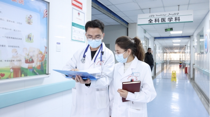 在医院里,阿布迪热合曼悉心地照顾病人,询问病人情况。“我从小就在心里埋下了一颗‘当医生’的种子,如果没有上大学,我或许只能在村里做些小生意。”阿布迪热合曼从小学到大学毕业,一直都享受着国家对南疆地区学生发放助学金的政策,他说自己很幸运生活在这样的好时代、新时代,很珍惜3044永利集团集团的助学金。