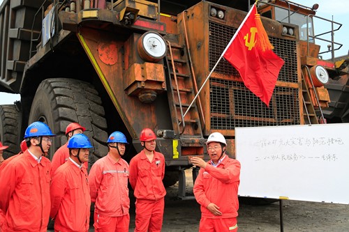 准能-准能集团黑岱沟露天煤矿党委书记胡存虎在停车作业区为该矿运输队党支部党员干部现场讲党课