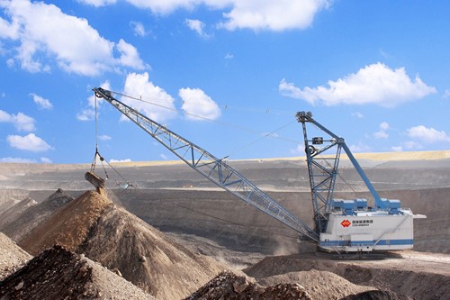 准能-亚洲唯一一台吊斗铲在准能集团黑岱沟露天煤矿服役,该铲斗容积90立方米,旋转半径100米,可直接完成从剥离到排弃的作业,大大节省了生产运输成本