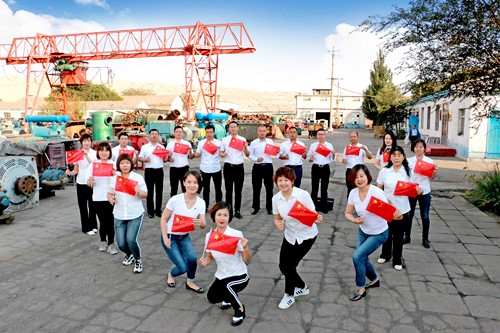 乌海能源公司加强党的建设,充分发挥党员的先锋模范作用,带领职工群众攻坚克难。图为苏海图煤矿在采空区综合治理现场与国旗合影。