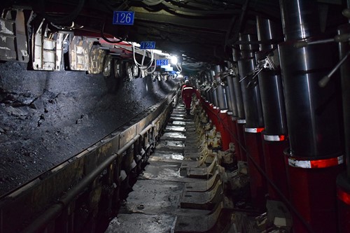 乌海能源不断提升产业发展水平,煤矿生产一线机械化程度不断提高,有效降低职工的劳动强度。图为乌海能源棋盘井煤矿综采工作面。