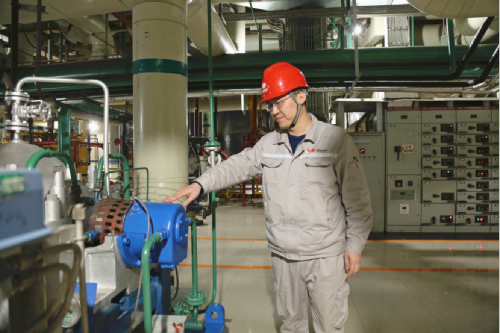 图为邹乐鸿正在检查设备运行状态