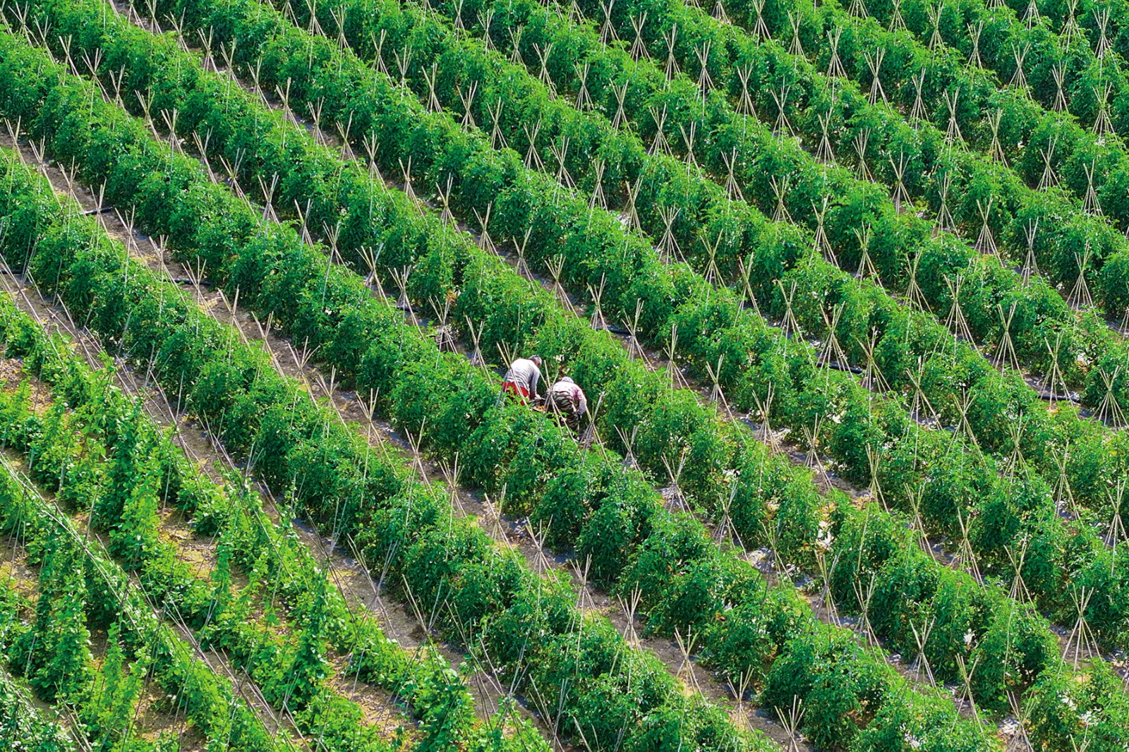 图为职工在菜园里采摘蔬菜