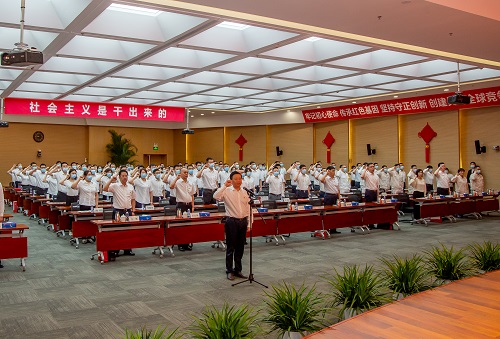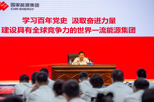 王祥喜代表集团党组向光荣入党的同志们表示祝贺。在题为《学习百年党史,汲取奋进力量,建设具有全球竞争力的世界一流能源集团》的专题党课中,从学习百年党史和国有企业、能源工业发展史,感悟百年党史蕴含的真理力量,发挥好共产党员先锋模范作用等三个方面,结合集团实际和工作体会与大家交流。他指出,党的历史是最生动、最有说服力的教科书,要全面了解中国共产党百年奋斗的光辉历程,准确把握国有企业和能源工业在党领导下取得的历史性成就,深刻认识到国有企业是中国特色社会主义的重要物质基础和政治基础,通过加强和完善党对国有企业的领导、加强和改进国有企业党的建设,使国有企业成为党和国家最可信赖的依靠力量,成为坚决贯彻执行党中央决策部署的重要力量,成为贯彻新发展理念、全面深化改革的重要力量,成为实施“走出去”战略、“一带一路”建设等重大战略的重要力量,成为壮大综合国力、促进经济社会发展、保障和改善民生的重要力量,成为我们党赢得具有许多新的历史特点的伟大斗争胜利的重要力量。