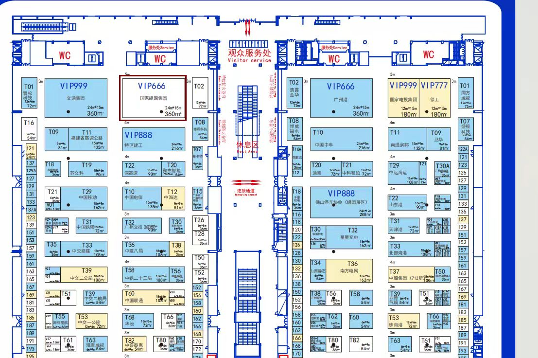 (二)参展展位示意图:暂定参展展位位于北京国际展览馆(顺义)馆、面积约500㎡。由于展位规划暂未最终确定,展位图参考2024年参展展位,设计时需考虑后续调整可能性,需便于调整。