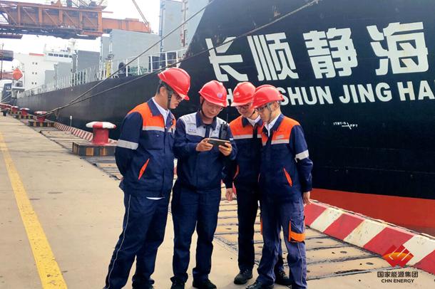 图为黄骅港务在三期煤炭码头收看庆祝中国共产党成立100周年大会盛况