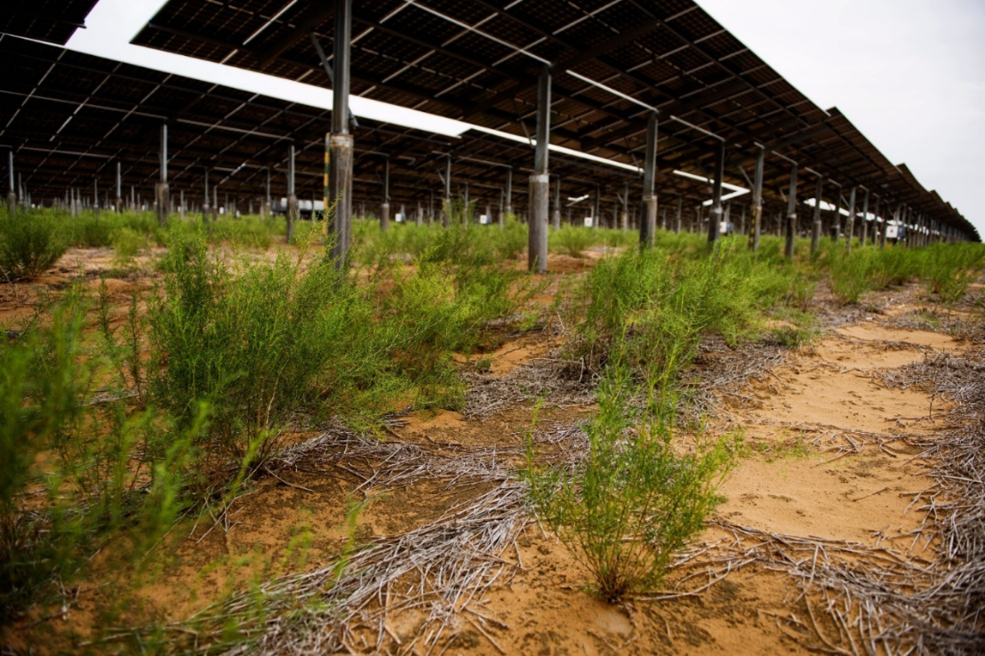 The base is China’s largest desert areas, the Gobi, and other arid areas new energy facility and serves as the core supporting project for the “Ningxia Power to Hunan” ultra-high-voltage transmission line—the first officially approved channel dedicated to delivering clean energy from large-scale desert-based photovoltaic plants. The base follows a model of “power generation on the panels, planting between the panels, and ecological restoration beneath the panels”.